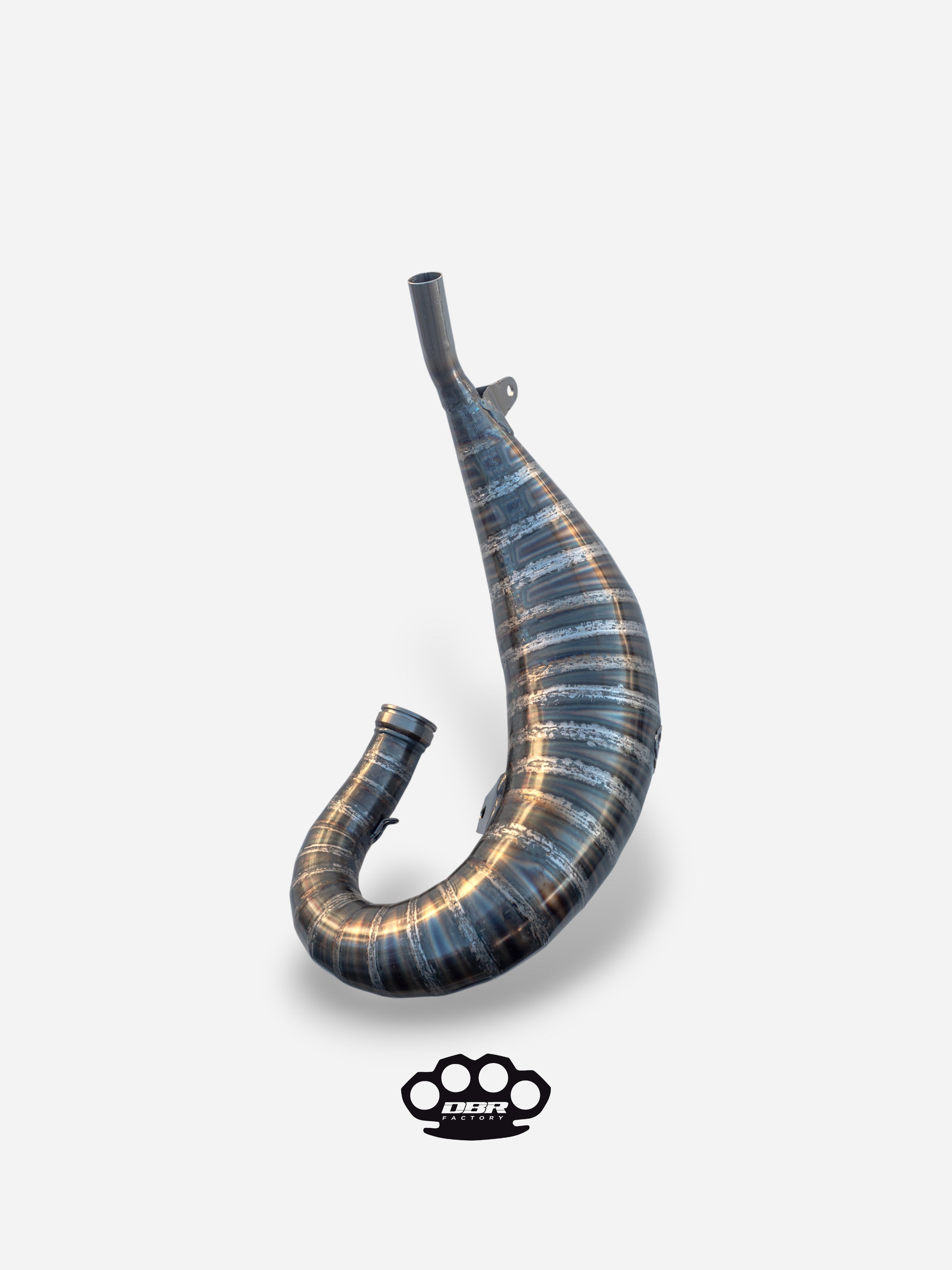 Ogni espansione è ribattuta a mano e saldata con precisione per garantire volumi interni perfetti. Le saldature a vista e la finitura artigianale donano alla tua moto un look DBR Factory, identico a quello delle moto da competizione.